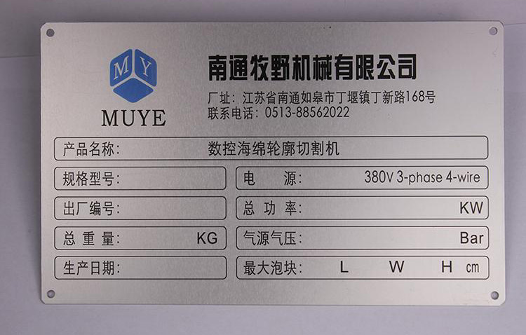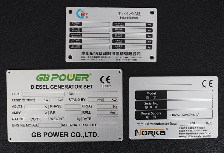金屬銘牌一般固定在產品上面,向用戶提供廠家商標識別、品牌區(qū)分,產品參數(shù)銘記等信息,方便第一時間簡單快速的了解產品。